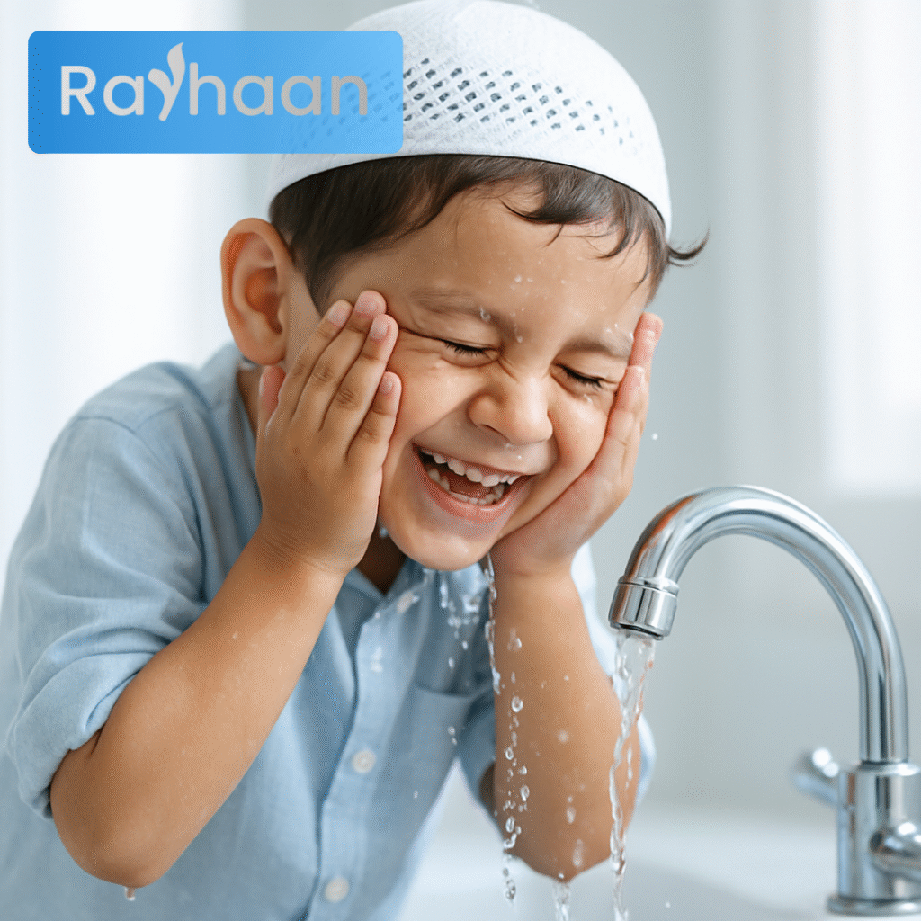• Day 1–3: Play azan at prayer times; show the prayer rug; let child sit with you.