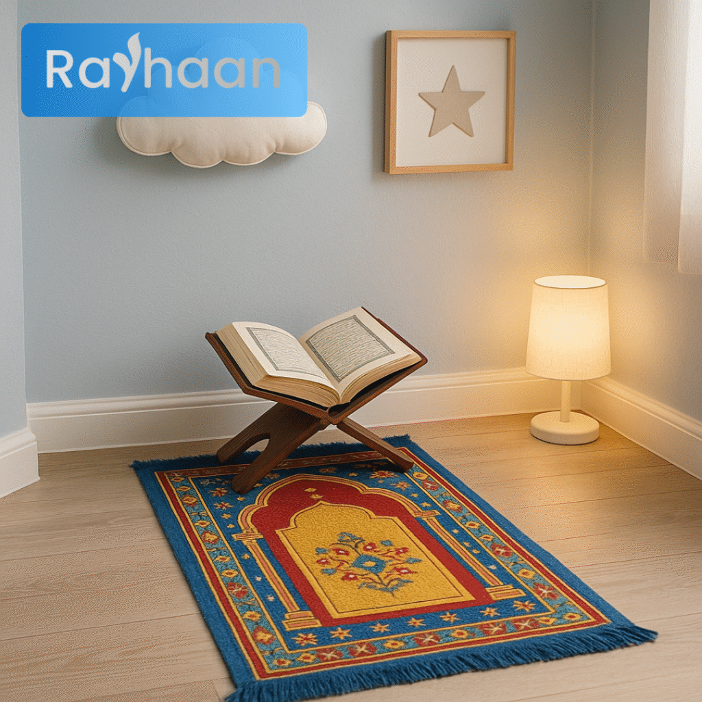 • Create a special prayer corner: child cushion, small shelf with dua cards, soft light.