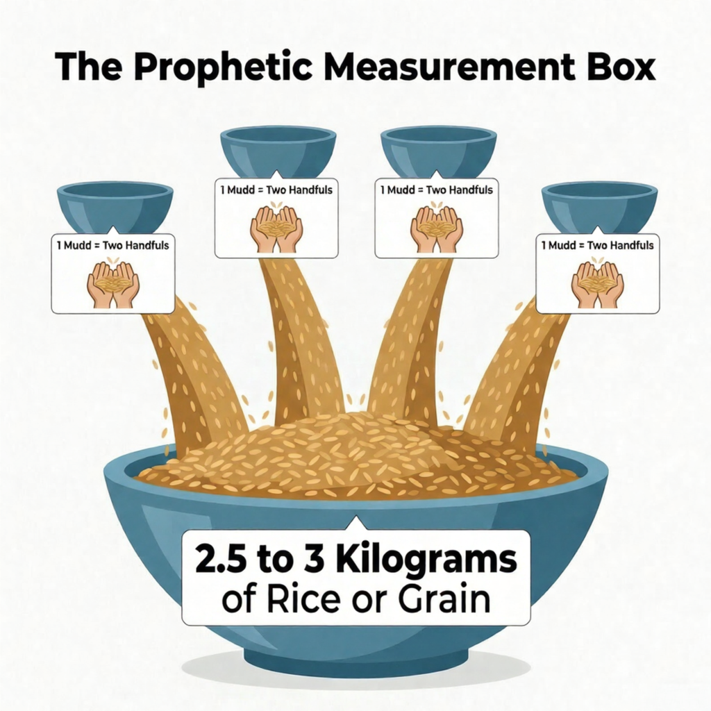 Traditionally, the Prophet Muhammad (PBUH) specified the Zakat al-Fitr amount as one Sa’a of staple food, such as dates, barley, wheat, or rice. In modern metric terms, one Sa’a is approximately equivalent to a volume of 3 liters or roughly 2.5 to 3 kilograms of grain.